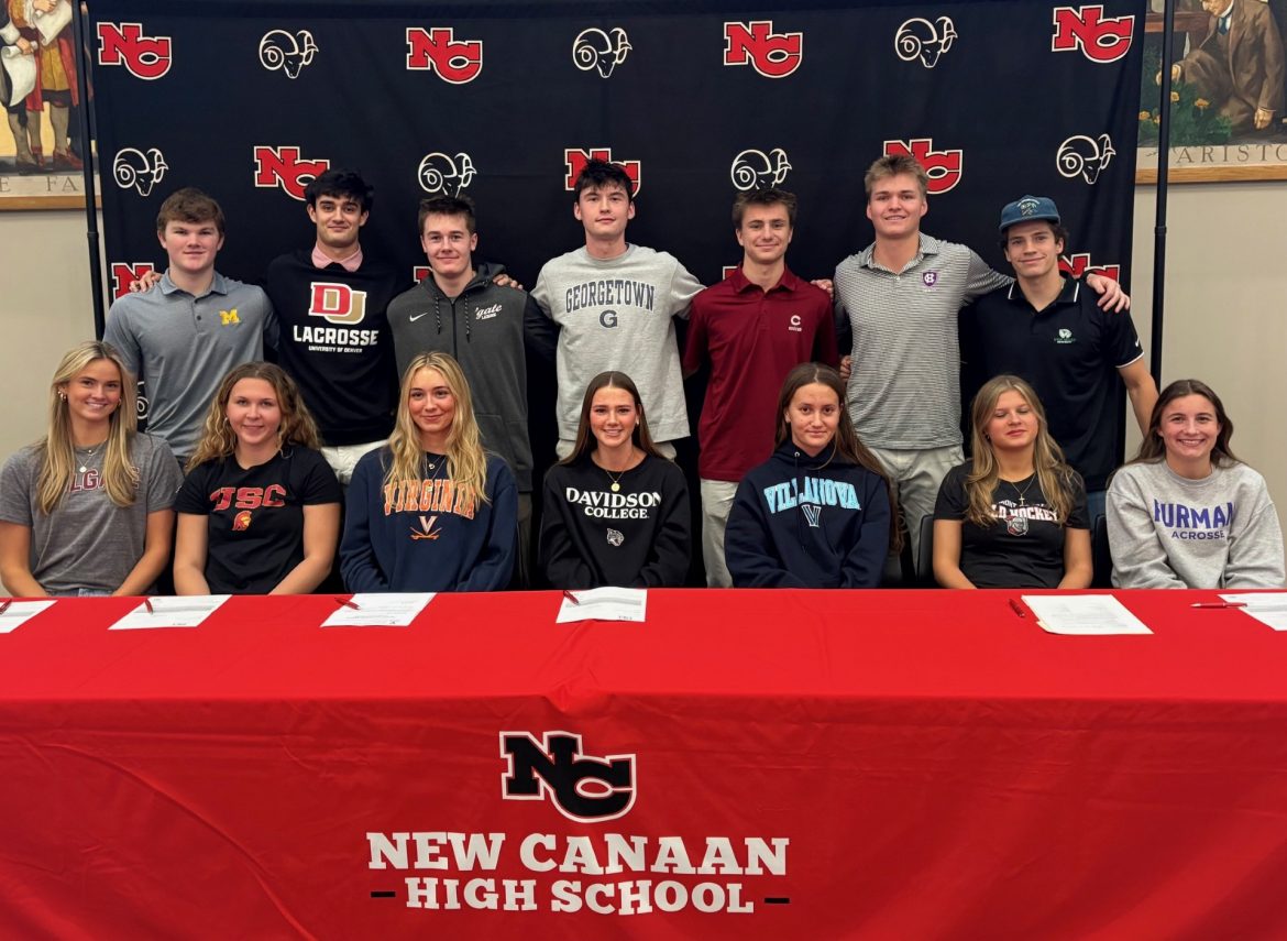 Fourteen New Canaan High School seniors on Wednesday signed commitment letters to play sports in Divisions I and II in college starting next year.
