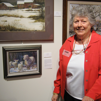 Lea Allen Gebauer with a painting at the Carriage Barn Arts Center. Contributed