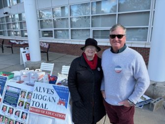 “We spent a lot of time over the last eight weeks or so, out talking to voters about our schools and about our town and what’s best for our community,” Kaye said. “There’s a lot of enthusiasm. People care deeply about our schools, and we want to make sure that we stay on track.That we keep our eye on the ball and we make sure that our schools stay strong. We’ll see what happens today. I hope I have the opportunity to do that.”
