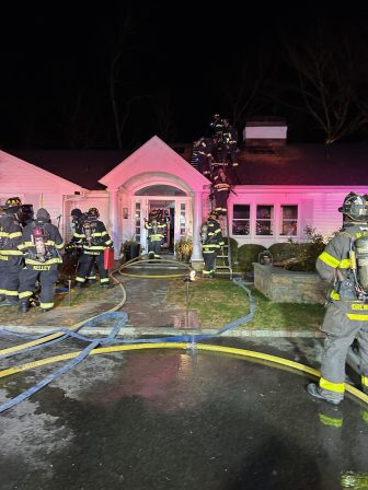 Firefighters put out an attic fire on Ramhorne Road, on Dec. 5, 2025. Photo courtesy of the New Canaan Fire Department