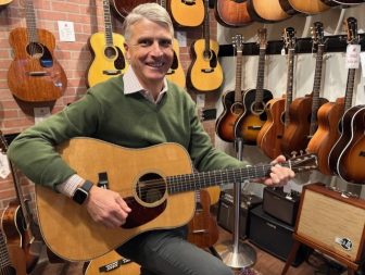 Guitar from Bourgeois Guitars in Lewiston, Maine. Handcrafted, high-quality, low-volume guitar maker. New Canaan Music just started carrying them and is the only authorized dealer in the state of Connecticut. The guitar is similar to a Martin but higher-level quality of wood and construction. Priced at $6,199. Credit: Michael Dinan