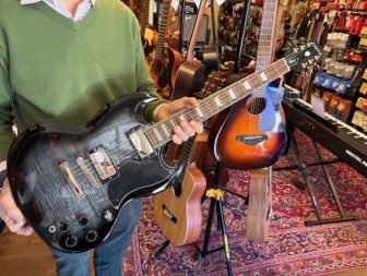 A new Epiphone Tribute Series SG guitar. It has the look and feel of a classic SG by Gibson, but for a fraction of the price. It’s great for a beginner that can move up to an intermediate-level guitar. It’s a brand that Gibson took on for its lower-price point guitar. Priced at $349. Credit: Michael Dinan