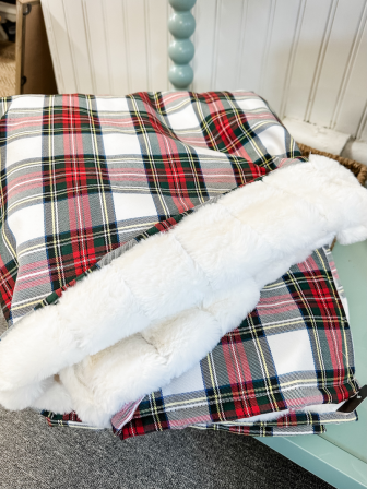 Jackie Fucigna: “Our cozy festive tartan throw features ultra-soft fuzz on one side and a classic tartan print on the other, perfect for couches, beds, and everything in between.” $94