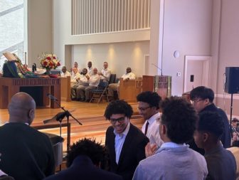 Presented by the Interfaith Council of New Canaan and UMC, the 24th Annual Celebration Service for King featured testimonials from NCHS junior Chris Feliz and senior Kian Ragaza, both ABC scholars, a guest address from the Rev. Richard Williams, executive director and pastor at Pivot Ministries, songs from the men’s choir at Pivot as well as bass/baritone Roosevelt Credit, an interfaith prayer for peace led by Jennifer Zonis, singing of the hymns “Lift Every Voice and Sing” and “We Shall Overcome,” an offertory benefiting the New Canaan Food Pantry, prayers led by the Rev. Gilbert Burgess of the Community Baptist Church the Rev. Mark Grorud of St. Michael’s Lutheran Church and comments by the Rev. Martha Epstein and Marla Chisolm, both of UMC.