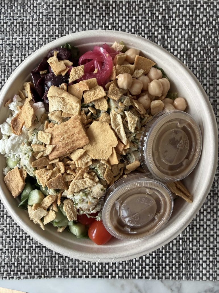 What I wish I’d eaten instead: the Healthy Greek Salad from Greens on the Go. Their salad greens are always visibly, impeccably fresh, the ingredients are carefully selected and cut precisely, and the team is friendly. Plus, the lemon-shallot vinaigrette GotG makes in-house lends brightness and pep to the dish.